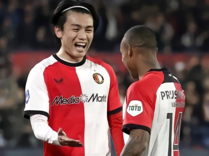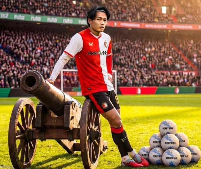 然而初登荷甲赛场的他并非一帆风顺。受限于伤病与出场时间,他在加盟后的第一个赛季仅为费耶诺德贡献9球,还曾一度陷入两个月的进球荒。但正如他在接受采访时所说:“我从小就是范佩西的铁杆球迷,他说的每句话都让我受益匪浅。”在荷兰传奇射手范佩西的调教下,这位日本前锋终于在第三个赛季迎来了全面爆发。